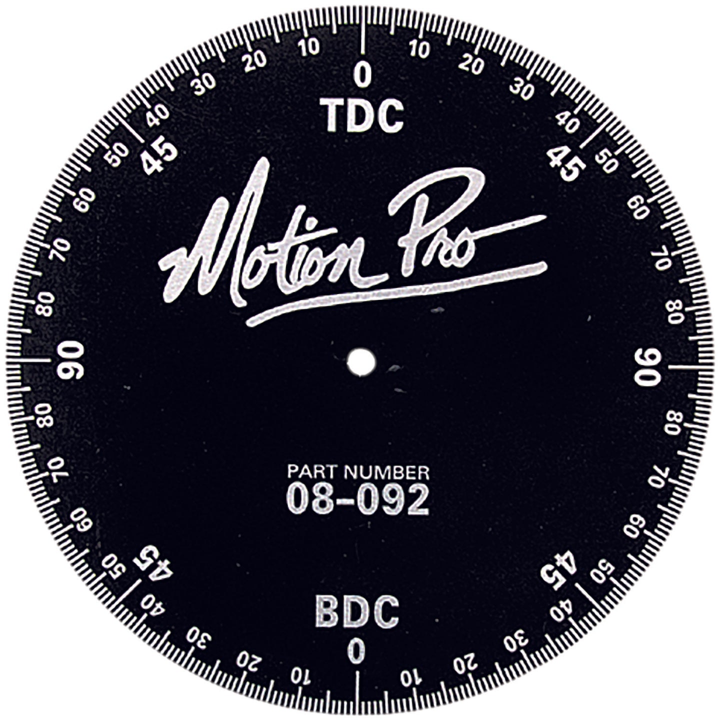 Manufactured from .052" thick with a 6¾” outside diameter and a 6mm center hole. The black anodized finish allows for easy to read increments. This degree wheel can be used on all 2 cycle engines to check or setup the port timing or ignition timing. May be used on 4 cycle engines to check or adjust cam timing or ignition timing.