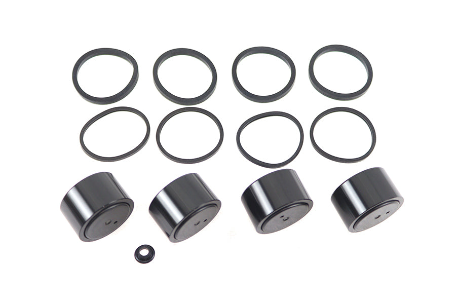 ***LIMITED ITEM PLS ALLOW 4 BUSINESS DAYS HANDLING TO SHIP*** Billet style caliper piston and seal kit. This kit comes with a caliper half seal 2 dust seals 4 piston seals 2 pistons and 2 piston dust seals. FITS HARLEY: 2008-UP FLT,