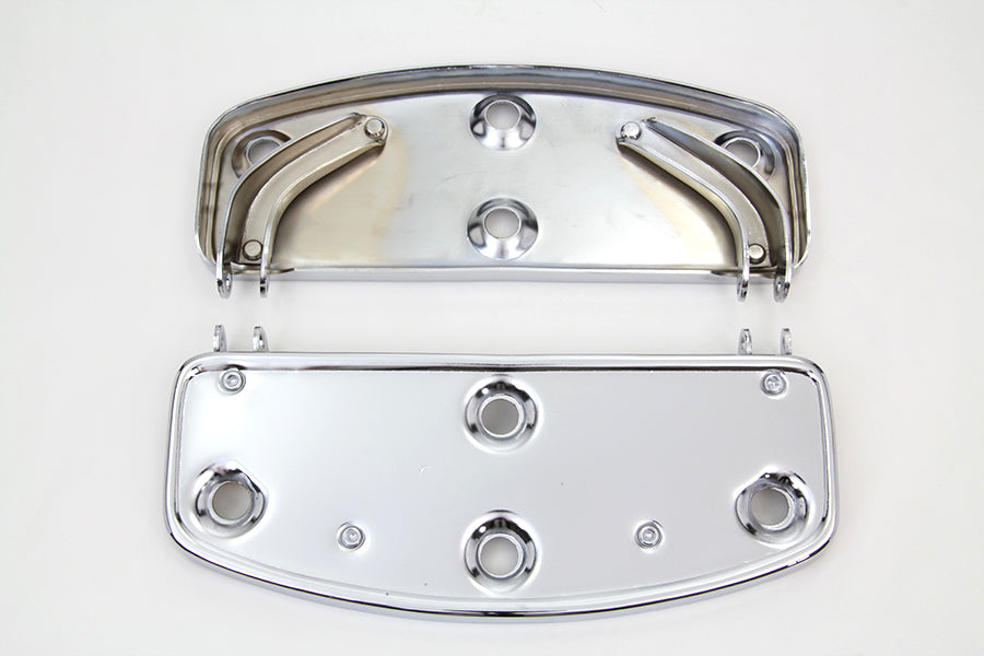 ***LIMITED ITEM PLS ALLOW 4 BUSINESS DAYS HANDLING TO SHIP*** Replica chrome footboards will fit stock mounting brackets. **NOTE: Must order rubber pads separately. Accepts ISO-bud top footboard plates. Mounting bracket features 10 inch spacing. FITS HARLEY: 1974-1980 FL,