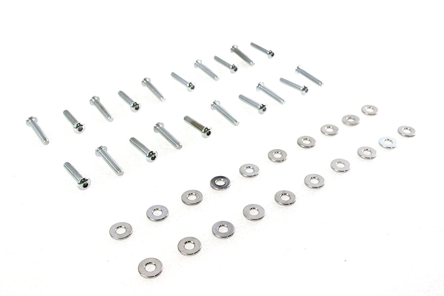 ***LIMITED ITEM PLS ALLOW 4 BUSINESS DAYS HANDLING TO SHIP*** Rocker box allen screw kit includes chrome plated button head allen screws and washers used to mount rocker covers on 2017-up Touring models. FITS HARLEY: 2017-UP FLT,
