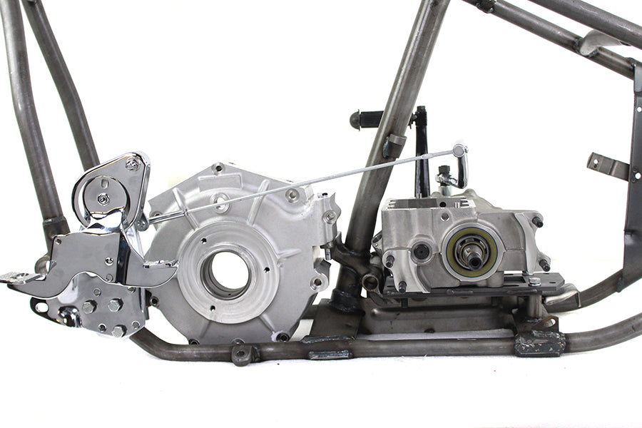***LIMITED ITEM PLS ALLOW 4 BUSINESS DAYS HANDLING TO SHIP*** Includes bracket with bushings installed pedal spring cover rod and all friction components. The clutch pull rod connects to the arm on the pivot shaft. This provides an offset to use with an aluminum inner primary cover. Order pull rod end and bolt separately. *NOTE: Can also be used on 1952-1984 Big Twin models when converting to handshift. 1971-1984 models will also require spacer V-Twin #21-0313. 1965-1978 models will also require V-Twin #18-3606 clutch release lever. 1965-1985 FL models wilil require a spacer V-Twin 21-0313 rod lever V-Twin #49-0145 and a snap ring V-Twin #12-0907. Included the foot clutch rod lever with offset. *NOTE: Inner arm position for use with aluminum primay covers. Spacer required behind rocker clutch assembly as shown. For tin primary applications 1941-1984 FL and 1936-1952 EL rod can be connected by the foot lever clutch pin directly to the pedal. FITS HARLEY: 1941-1984 FL, 1938-1948 UL, 1936-1952 EL,