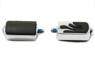 ***LIMITED ITEM PLS ALLOW 4 BUSINESS DAYS HANDLING TO SHIP*** Flame shifter peg kit for use with heel toe shifters. Features chrome flames with rubber accents. Sold as a pair. FITS HARLEY: 1965-1984 FL, 1979-UP FLT, 1986-UP FLST,