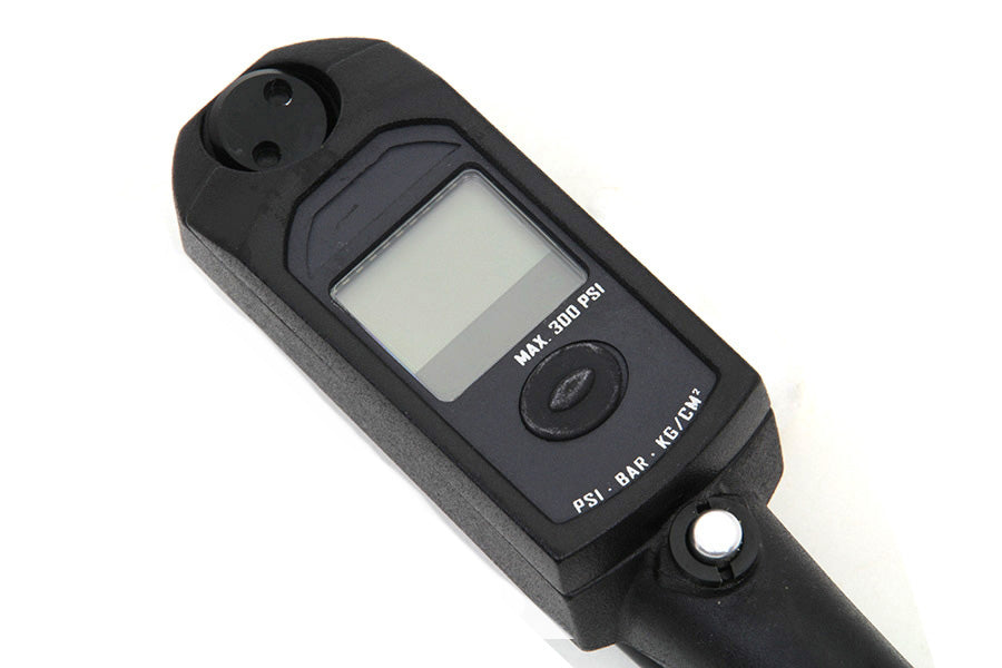 ***LIMITED ITEM PLS ALLOW 4 BUSINESS DAYS HANDLING TO SHIP*** Shock pump features a digital pressure gauge with a PSI range of 0-300. Shock pump tool is for use with Touring air suspension components. The pump adjusts the air pressure anywhere on the road. Digital display can be used to check and alter the pressure in all Touring rear air shocks. The gauge is for measuring the air pressure in tires. Tool features micro bleed valve that allows precise adjustment of air pressure and the oeno loss air connector helps maintain shock pressure when the fitting is removed. Display units can be easily changed between PSI and Kpa. LCD readout operates on a long-lasting replaceable lithium coin-type battery (CR20323V). FITS HARLEY: 1983-UP FLT, 1984-1994 FXRT,
