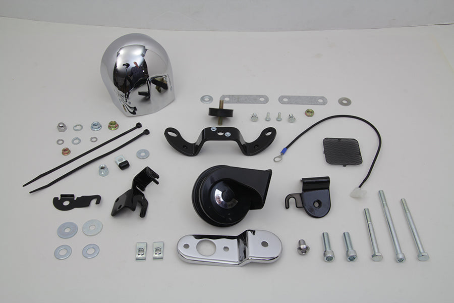 ***LIMITED ITEM PLS ALLOW 4 BUSINESS DAYS HANDLING TO SHIP*** Chrome horn kit is 12 volt type and can be used to convert your stock horn to the new look of a Big Twin. *NOTE: For Softail and Big Twin models - some components included may not be needed for installation. FITS HARLEY: 1993-UP XL, 1991-UP FLST, 1991-UP FXST,